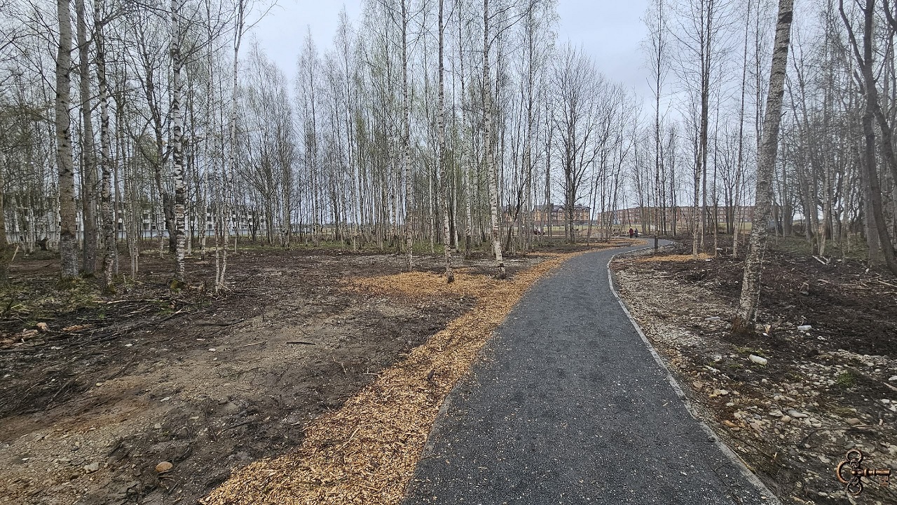 В парке в Псковском районе Великого Новгорода продолжается благоустройство. Идут работы с древесно-кустарниковой растительностью в роще.